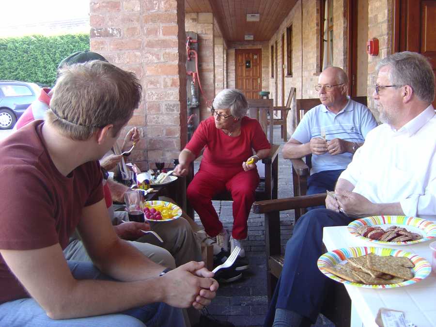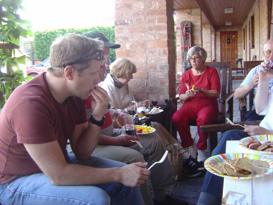 På kvällen ordnade vi kalas i patian på hotellet. Här lyckades vi äta upp nästan all den ost vi köpte i Colston bassett. Flera vinflaskor gick också åt. Mysigt och fint.
