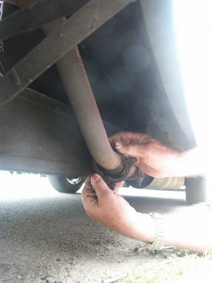 Tore kravlade under bilen och fick hjälp av Björn. Bosse och Robert fotograferade mest. Marianne satt lugnt kvar i passagerarsätet.