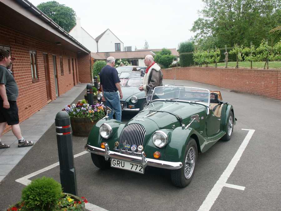 Bilar på rad utanför rummen