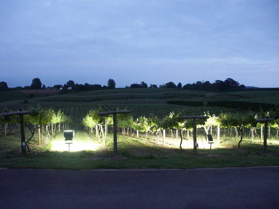 Vinrankorna i kvällsbelysning