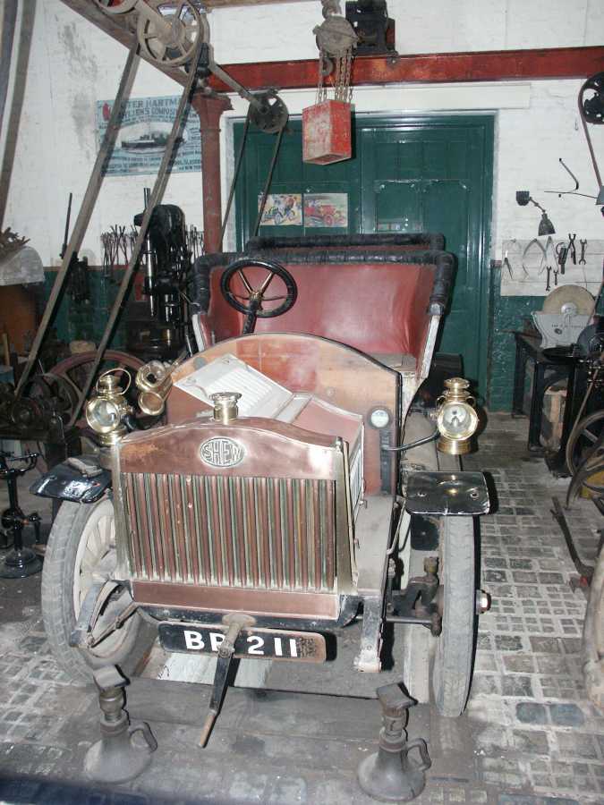 Bil av märket "Shew" inne på verkstaden