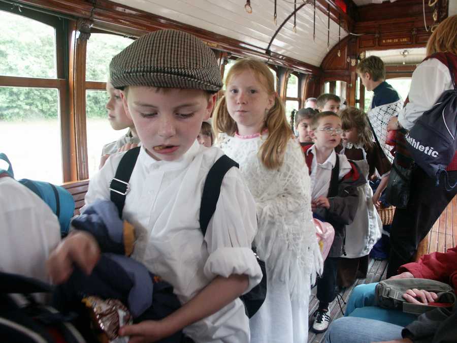 Tidstypiskt klädda skolbarn